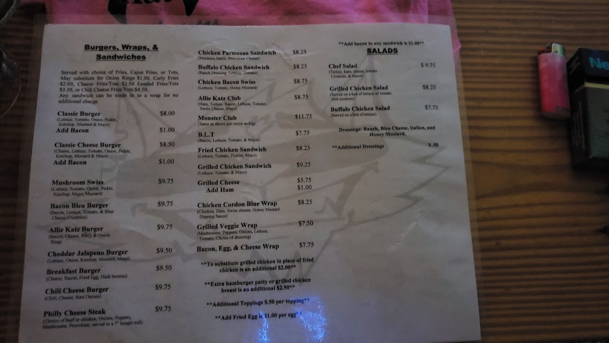 Welcome to Allie Katz Bar And Grill, a charming eatery located at 3112 Washington Rd, Augusta, GA. This establishment serves up a delightful menu featuring burgers, wraps, and sandwiches that are sure to please any palate. Dive into classics like the Classic Cheese Burger or explore the more adventurous Cheddar Jalapeno Burger. For those craving something different, the Allie Katz Club and Philly Cheese Steak are must-tries.